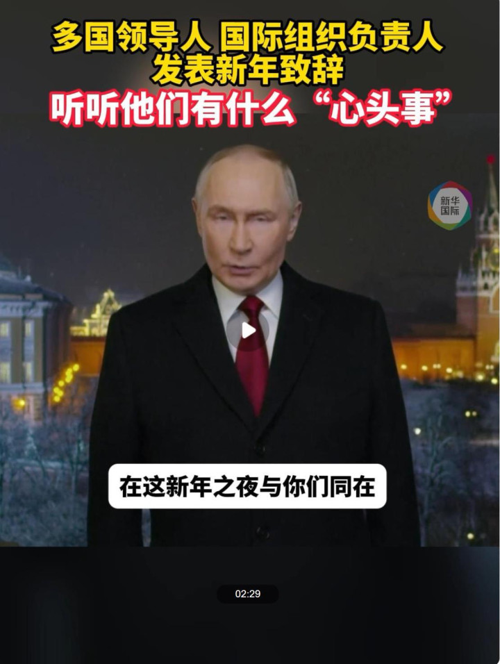 俄罗斯总统普京2025年12月31日向俄民众发表新年贺词,向参加对乌克兰特别军事行动的俄罗斯军人表达支持,并说“相信我们终将胜利”。